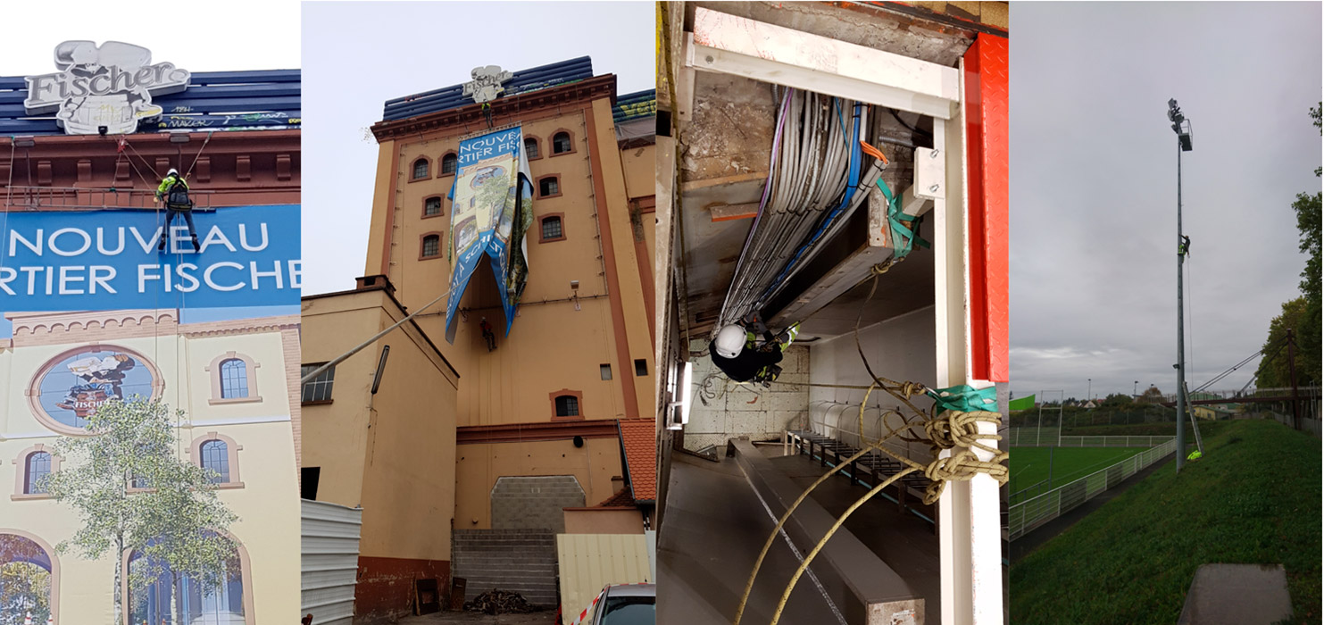 Un métier dont les techniques combinées de » travaux sur cordes » et de savoir faire manuel permettent d’effectuer des interventions et des réparations dans des zones “d’accès difficile” de grande hauteur ou en espaces confinés pour lesquels nous utilisons des équipements de protection individuel.